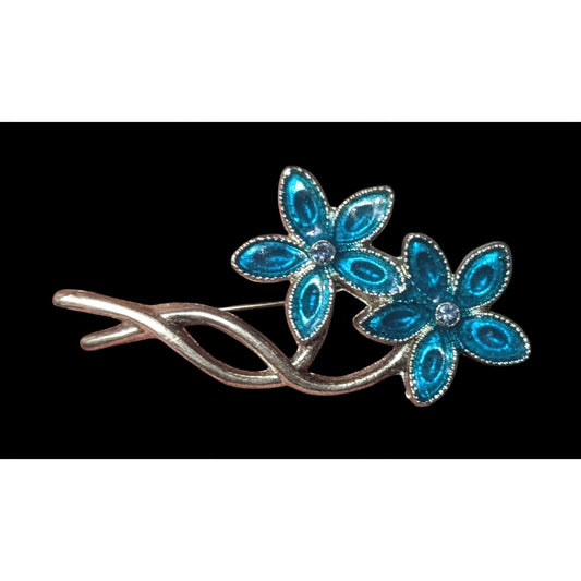 Vintage Floral Blue Gemmed Silver Tone Brooch