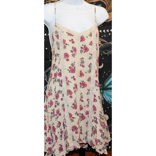 90s/Y2K Hollister Floral Asymmetrical Cream And Pink Dress