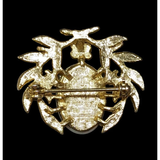 Vintage DFA Dubarry Fifth Avenue Gold Tone Leaf Wreath Brooch With Faux Pearls