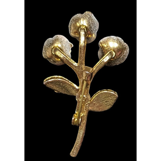 Vintage Cottagecore White And Purple Rose Brooch With Gold Tone Stem