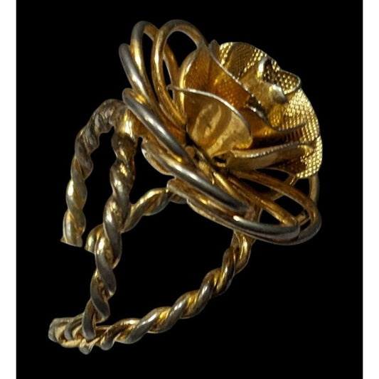 Vintage Fantasy Rose Floral Gold Tone Open Ring
