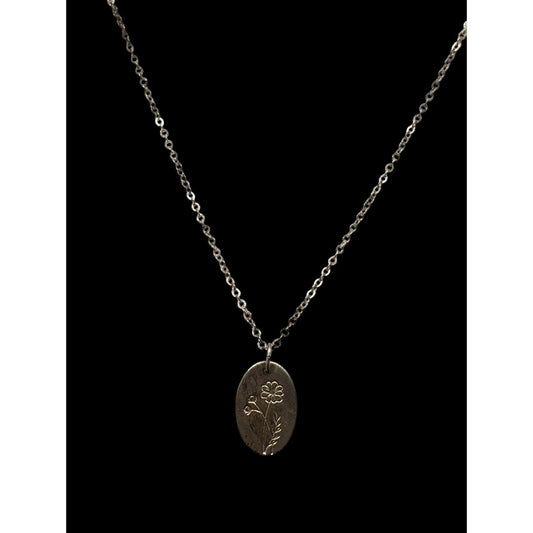 Vintage Handmade Floral Stamped Silver Tone Pendant Necklace