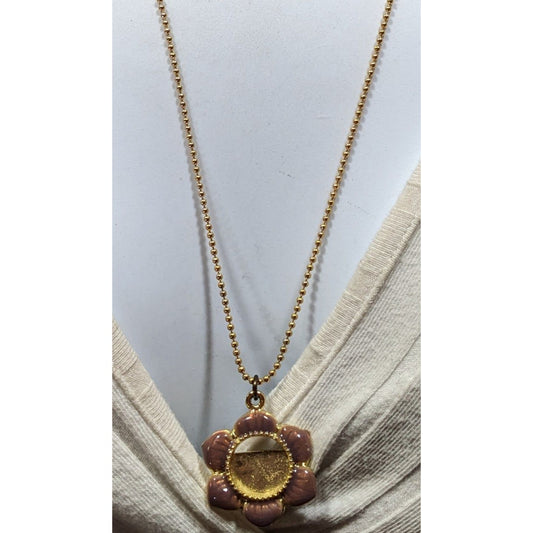 Vintage Coquette Floral Lampwork Glass Beaded Necklace Pink Grey And Gold Tone
