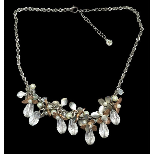 C 1946 Floral Metal Glass And Faux Pearl Cluster Necklace
