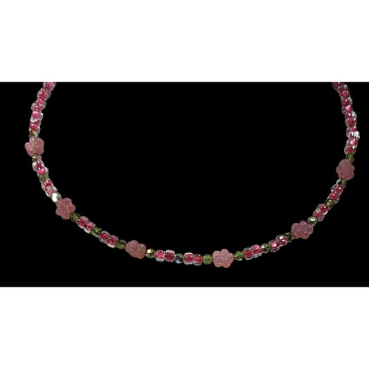 Fairycore Coquette Pink And Green Floral Handmade Glass Coil Necklace