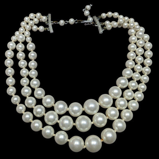 Vintage Japan Frosted Faux Pearl Layered Necklace