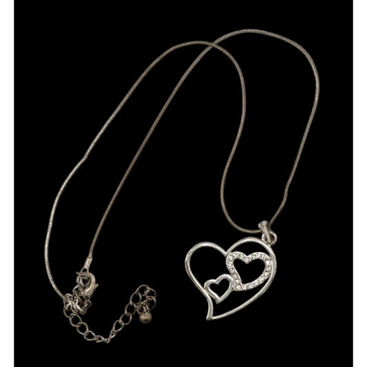 Valentine's Love Heart In Heart Silver Tone Pendant Necklace With Rhinestones