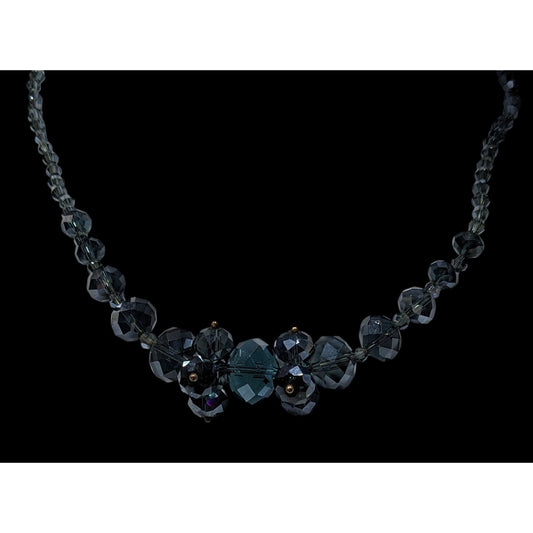 Elegant Midnight Blue Crystal Cluster Necklace Handcrafted Faceted Glass Necklace