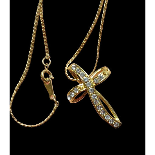 Avon Vintage Golden Gemmed Cross Necklace