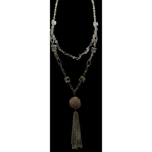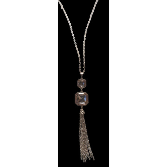 Gold Chain Necklace With Crystal Pendant & Tassel