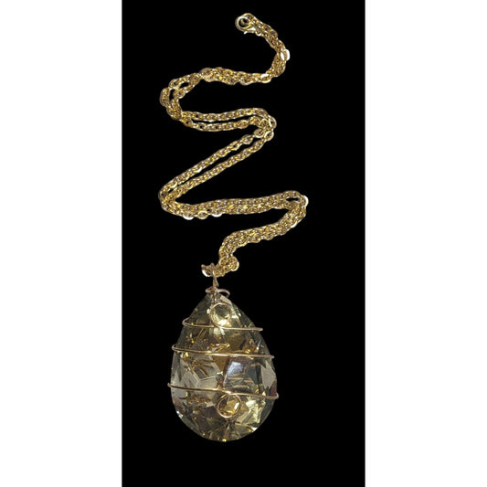 Gold Chain Necklace With Large Faceted Crystal Pendant