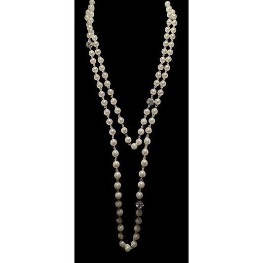 Vintage Roman Pearl Rhinestone Opera Necklace