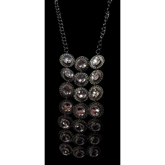 Elegant Glam Lightweight Gemmed Silver Tone Statement Necklace