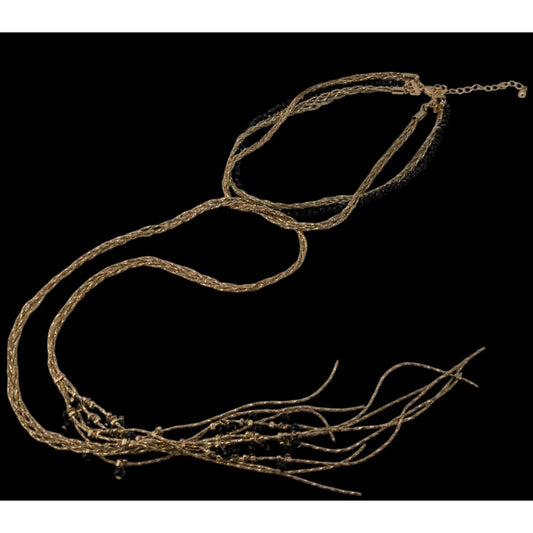 Elegant Glam Gold Tone And Black Long Tassel Necklace With Braided Chains & Beads