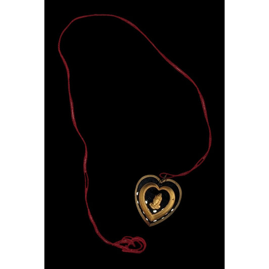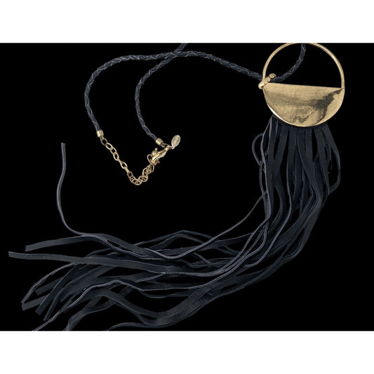 Vintage Chicos Southwestern Black Leather Fringe Gold Tone Pendant Necklace