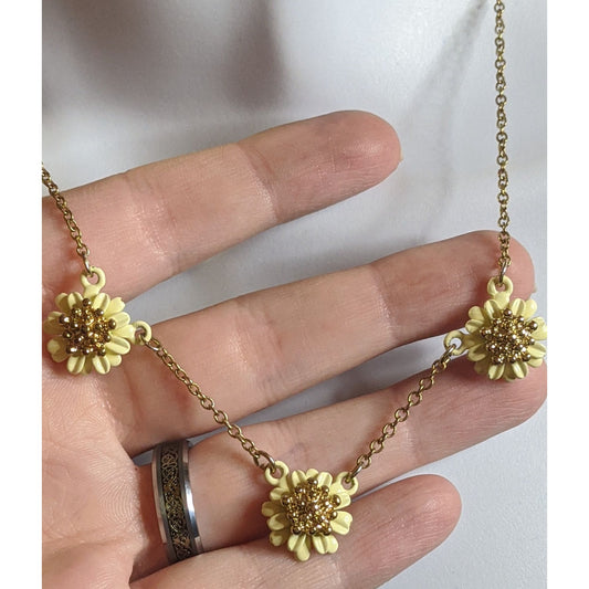 Yellow Cottagecore Sunflower Charm Necklace With Gold-Tone Chain
