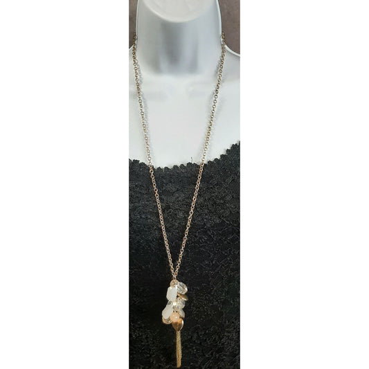 Vintage Y2K Gold Chain Necklace With Beaded & Rhinestone Tassel Pendant