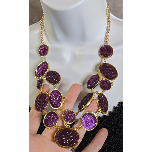 Vintage Glam Purpled Gemmed Gold-Tone Necklace