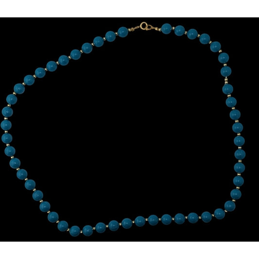 Vintage Retro Blue Bead Necklace With Gold-Tone Accents