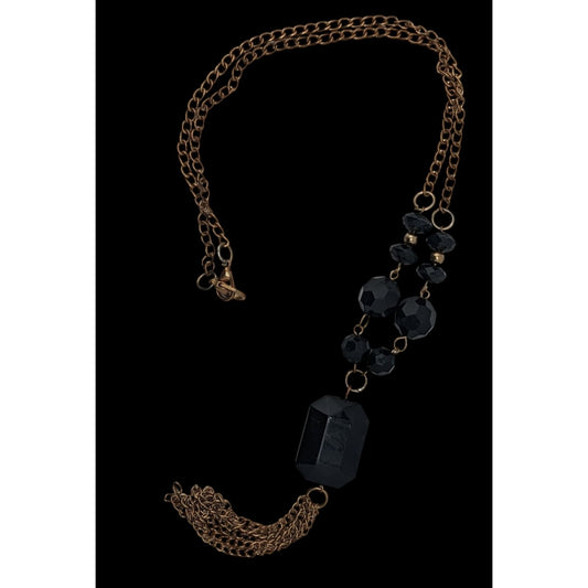 Gold-Tone Chain Necklace With Black Beads And Tassel Pendant