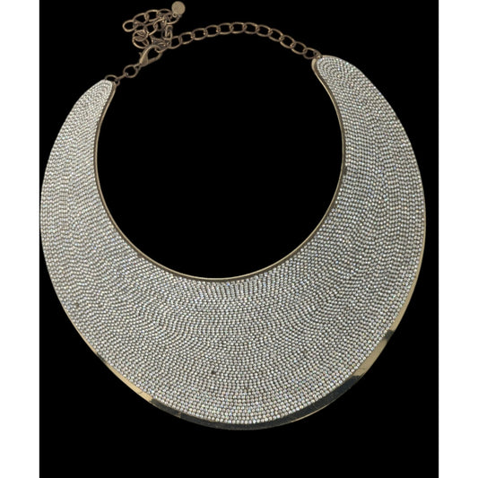 Save The Queen Crystal Statement Collar Bib Necklace With Gold-Tone Finish
