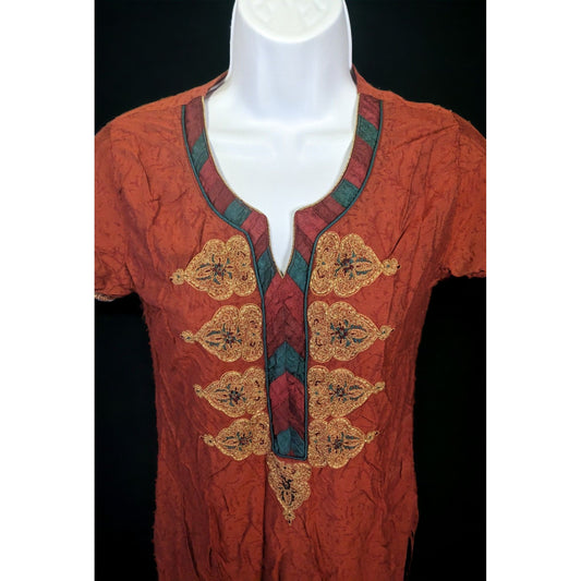 Rust Embroidered Indian Kurta