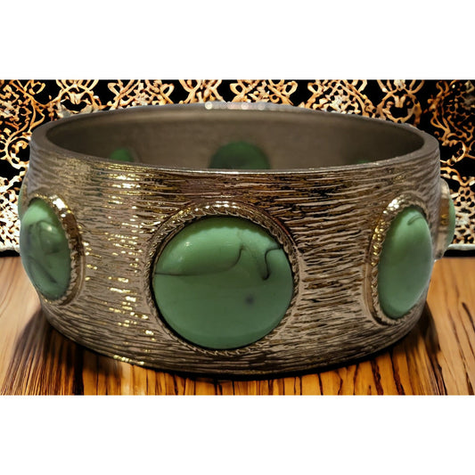 Gold Textured Mint Cabochon Bracelet