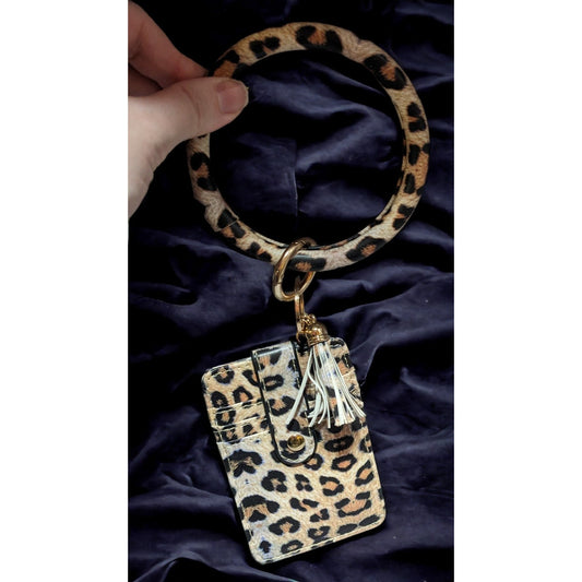 Leopard Print Card Holder Wristlet Keychain