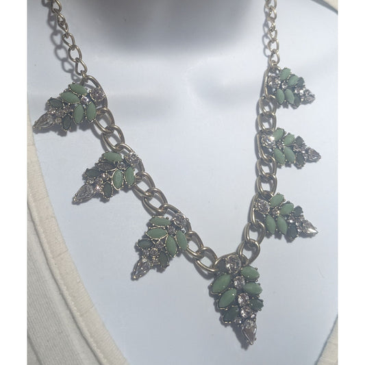 Green Gemmed Leaf Necklace
