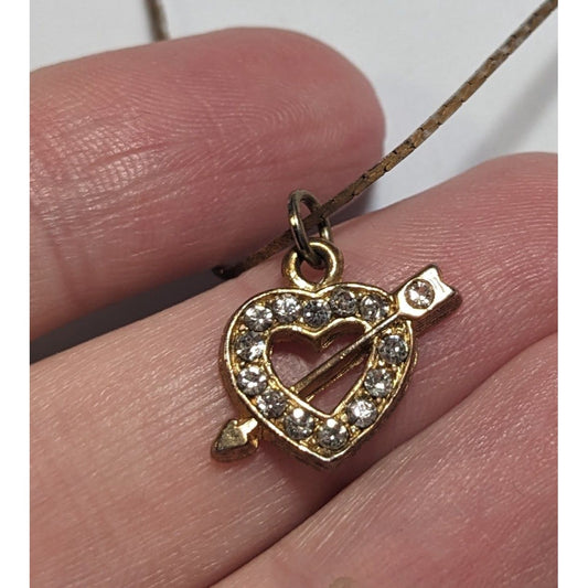 Gold Rhinestone Heart Arrow Necklace