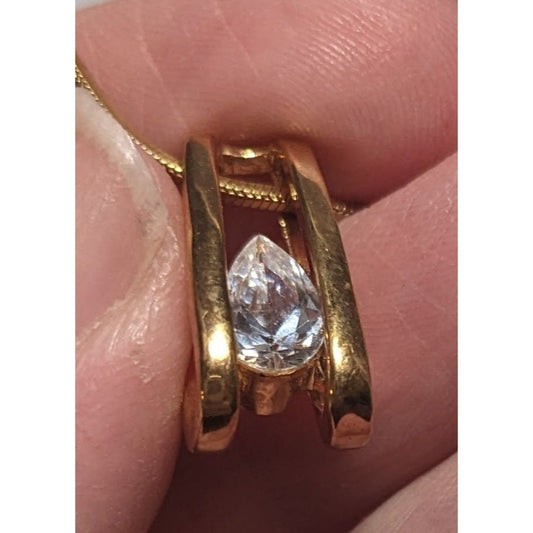 Gold Teardrop Cubic Zirconia Pedant Necklace