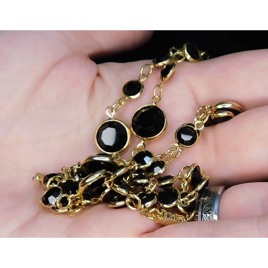Glam Goth Black And Gold Tone Gemmed Chain Necklace
