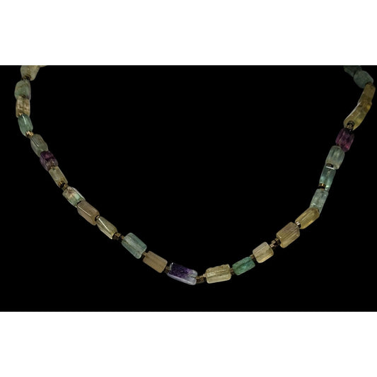 Vintage Multi-Color Fluorite & Brass Beaded Necklace