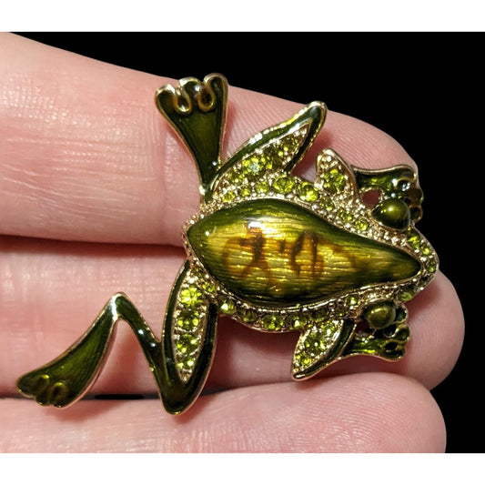 Vintage Liz Claiborne Rhinestone Enamel Frog Brooch