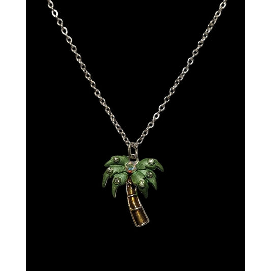 Vintage Avon Rhinestone Palm Tree Pendant Necklace