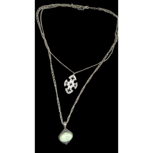 Whimsygoth Multilayer Double Pendant Cross And Cabochon Necklace