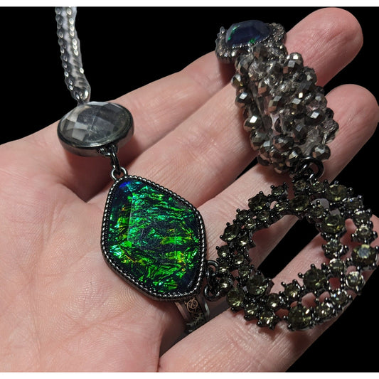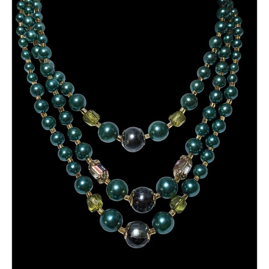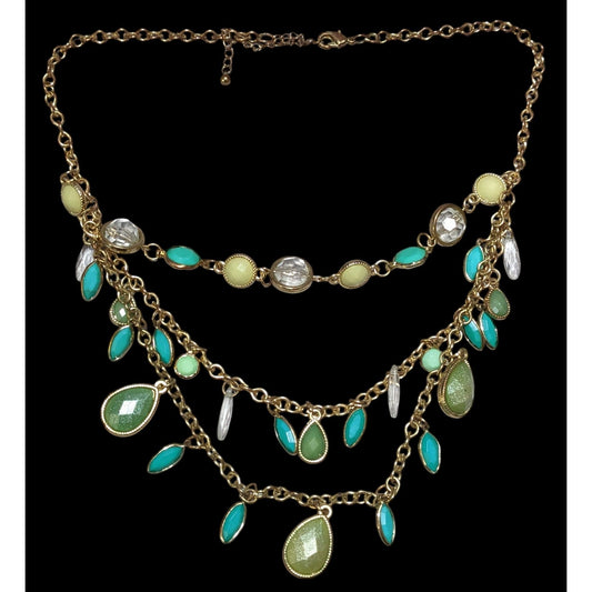 Festival Glam Multilayer Green And Teal Gemmed Necklace