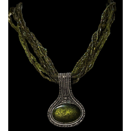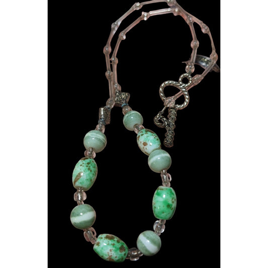 Green And Gold Glam Glass And Stone Beaded Necklace