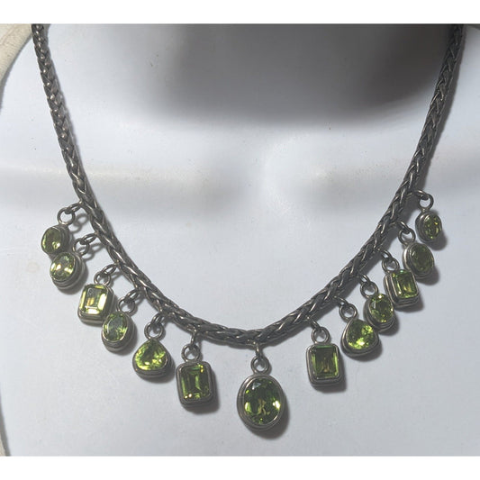 Vintage Sterling Silver Peridot Gemmed Fringe Necklace