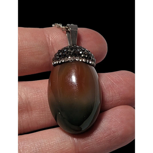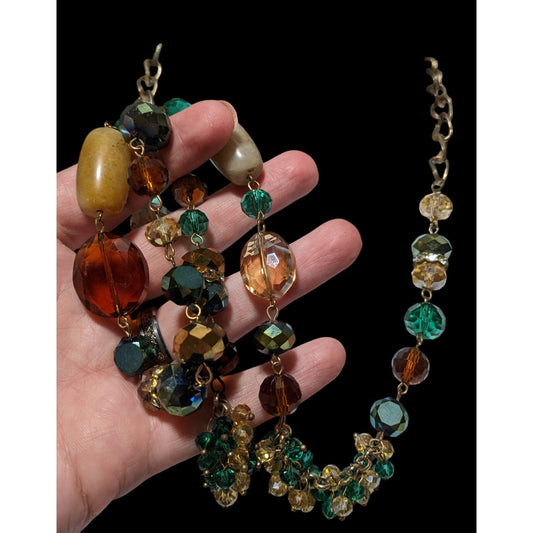 Orange And Green Rhinestone Capped Gemstone Necklace