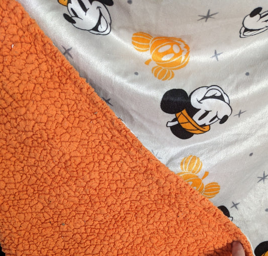 Disney Baby Halloween Mickey Mouse Plush Blanket 41x31 Soft Orange Sherpa & Gray Polyester Reversible