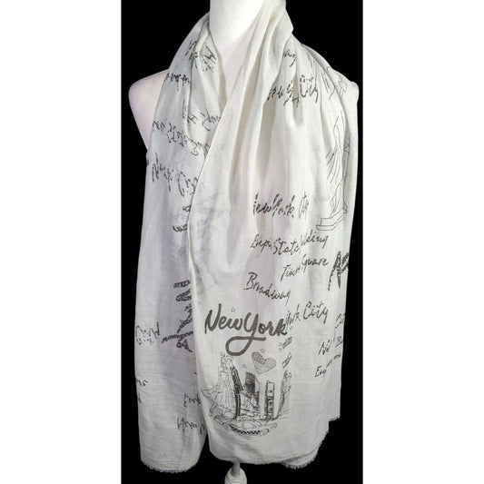 New York City Souvenir Scarf Statue Of Liberty & Skyline Print Glitter Accents Grey 73"x28"