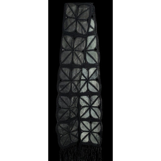 Vintage Bohemian Leather & Crochet Patchwork Scarf With Fringe