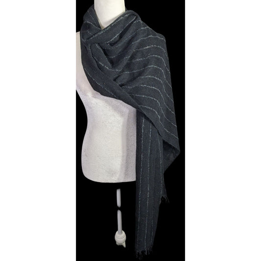 Preppy Designer Lauren Ralph Lauren Black Striped Scarf 22x82 Inches With Fringe Trim Made In Japan