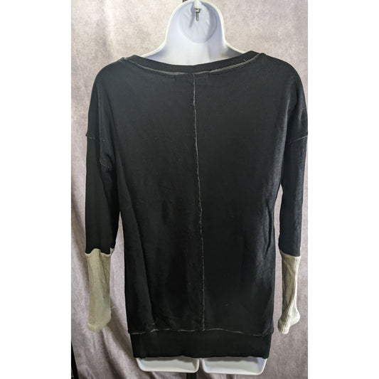 Americanable Black Grunge Top With Distressed Hem & Grey Ribbed Sleeves Side Zippers Made In USA Size Small