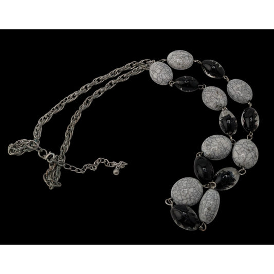Black & Grey Crackle Bead Necklace With Silver-Tone Chain