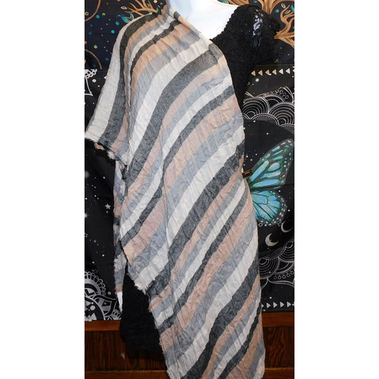 Charming Charlie Y2K Striped Lightweight Scarf With Fringe Pastel & Neutral Tones