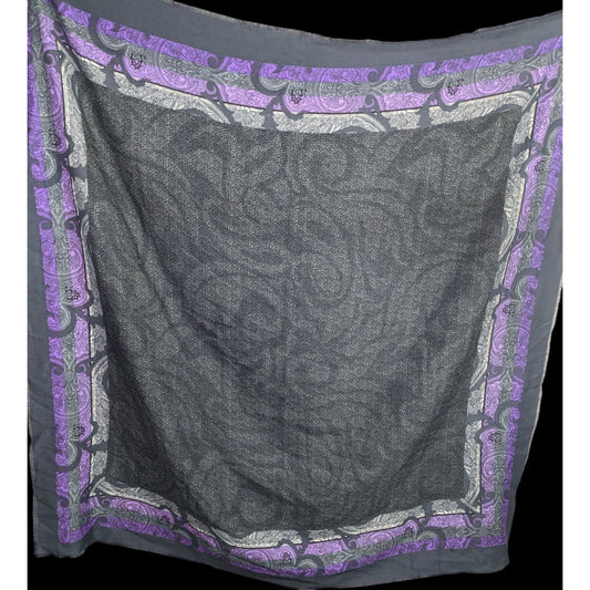 Marco Corsari Vintage Gothic Paisley Scarf 46x46 Purple & Gray Lightweight Square Wrap