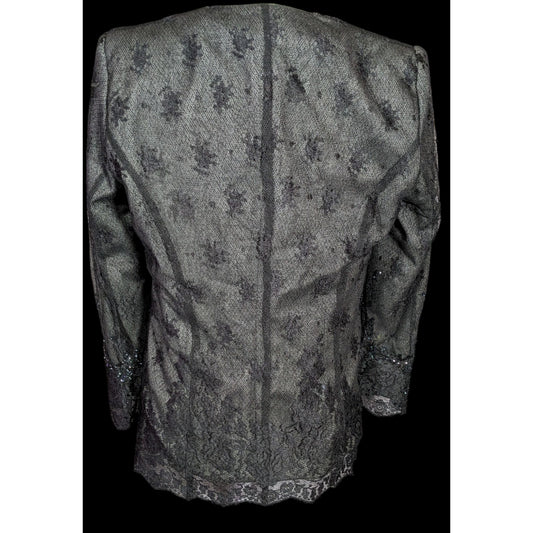 Vintage Douglas Anderson Corporate Goth Floral Wool Jacket With Beaded Accents
