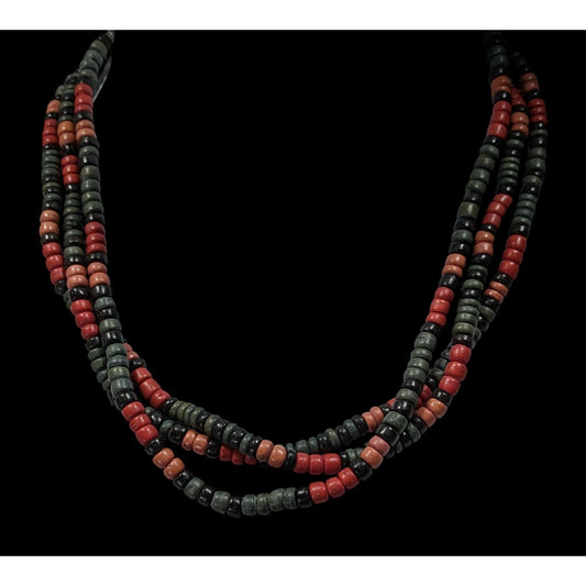Vintage Bohemian Painted Wood Layered Beaded Necklace